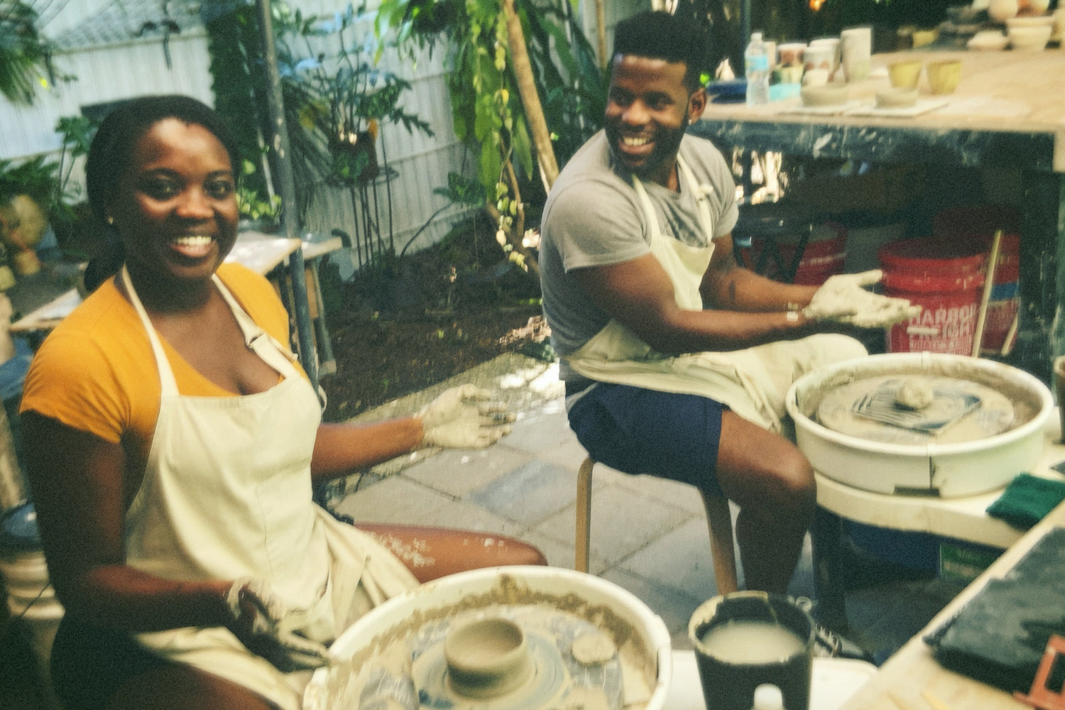 a potter’s wheel experience designed for brand new, never-touched-clay-before beginners, all for you and your sweetie