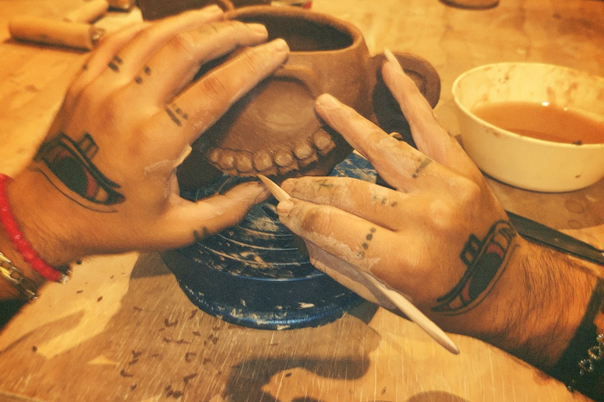 so, after you’ve arrived and settled in, we’ll demonstrate the process of centering, pulling, and shaping clay into functional art on the potter’s wheel. we’ll show you how to make a bowl, cup and a vase, play around with decoration (if you’d like) with texture tools, and then we can add handles and stamp sweet nothings on your pots at the end of class.